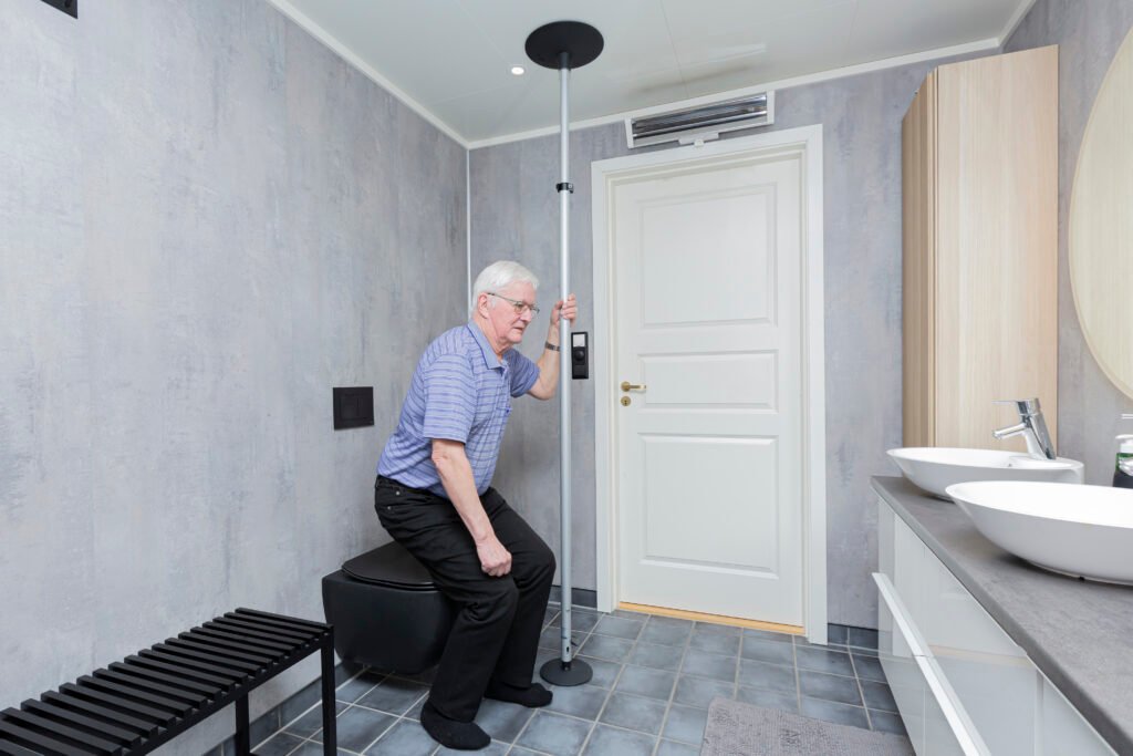 Vores badeværelsesløsninger er designet med fokus på både sikkerhed og selvstændighed. Fra højdejusterbare håndvaske til støttearme og bruselejer, skaber vi miljøer, der gør personlig pleje lettere, mere komfortabel og værdig.